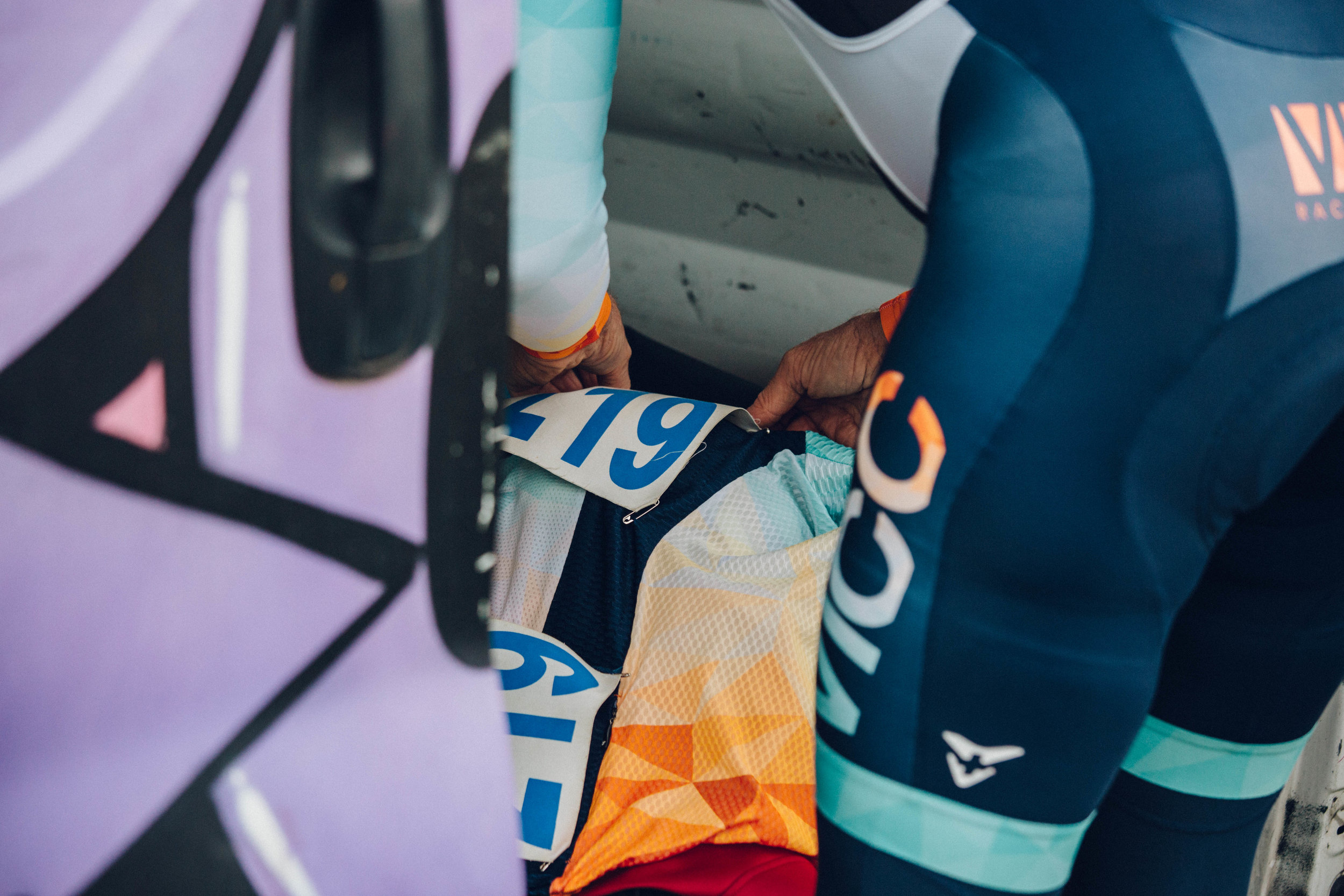 Jetzt steh ich also am Start. Zum ersten Mal ein Rennen. Vorne am Rad eine Startnummer, hinten am Trikot eine Startnummer, außerdem die Jersey-Taschen voll mit Gels. Vor mir eine ziemliche Menschenmenge, ich steh in Startblock 3 und hab auch ein wenig verpasst, mich nach vorne zu quetschen. Ich dreh mich gar nicht um, aber hinter mir stehen nochmal ziemlich viele Leute.